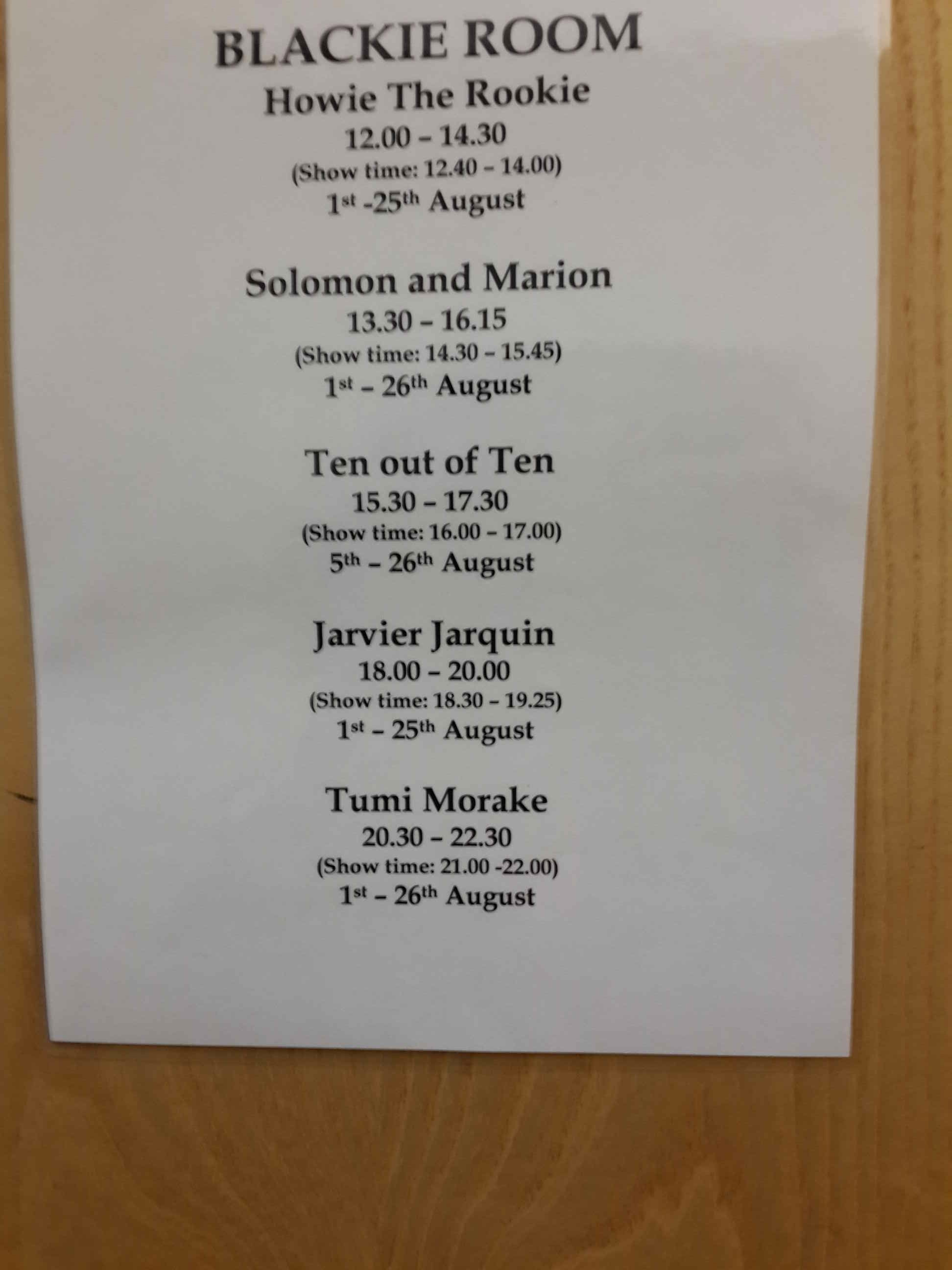 I am convinced there is a certain level of trauma that comes with moving from ‘rock star’ status to scrounging in Edinburgh. And that weird, unhealthy reliance on reviews. As a first timer you wish someone would prep you, prepare you for the worst so that you really can tell when you are doing as well as a first timer would be expected to. You are thrust, violently, from an audience that trusts you, to an audience that you need to prove yourself to. Or one you can’t figure out.
